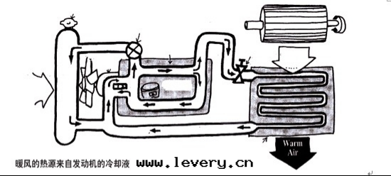 當發(fà)動(dòng)機(jī)冷(lěng)卻液温(wēn)度(dù)較高(gāo)时(shí),冷(lěng)卻液流过(guò)暖風(fēng)系(xì)統中(zhōng)的(de)热(rè)交換器(一(yī)般称为(wèi)暖風(fēng)小水(shuǐ)箱(xiāng)),将鼓風(fēng)機(jī)送来(lái)的(de)空(kōng)气(qì)與(yǔ)發(fà)動(dòng)機(jī)冷(lěng)液進(jìn)行热(rè)交換,空(kōng)气(qì)加热(rè)後(hòu)被(bèi)鼓風(fēng)機(jī)通(tòng)过(guò)各(gè)出(chū)風(fēng)口(kǒu)送入(rù)車內(nèi)。这(zhè)種(zhǒng)系(xì)統裝(zhuāng)置簡單而(ér)供热(rè)可(kě)靠,不另(lìng)需燃料,只(zhī)要(yào)發(fà)動(dòng)機(jī)工作(zuò),便可(kě)産生(shēng)热(rè)水(shuǐ)。但也(yě)有(yǒu)其(qí)明(míng)顯的(de)缺点,即必须在(zài)發(fà)動(dòng)機(jī)冷(lěng)卻液温(wēn)度(dù)上(shàng)升(shēng)到(dào)大(dà)循环(huán)时(shí)才能供暖。