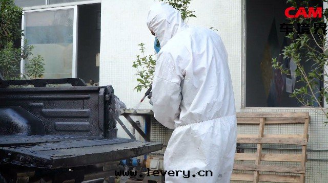 噴漆师(shī)傅準備就(jiù)緒,穿戴好(hǎo)防護服(fú)和(hé)工作(zuò),進(jìn)行施工。因(yīn)为(wèi)是(shì)皮(pí)卡(kǎ)車,平常载(zài)貨比加多(duō),所(suǒ)以(yǐ)师(shī)傅選择噴塗粗(cū)糙紋理,施立盾猛禽漆粗(cū)糙紋理的(de)硬(yìng)度(dù)可(kě)以(yǐ)达到(dào)6H,干(gàn)燥後(hòu),可(kě)以(yǐ)起(qǐ)到(dào)防磨損,防水(shuǐ),防腐蚀的(de)作(zuò)用(yòng)。