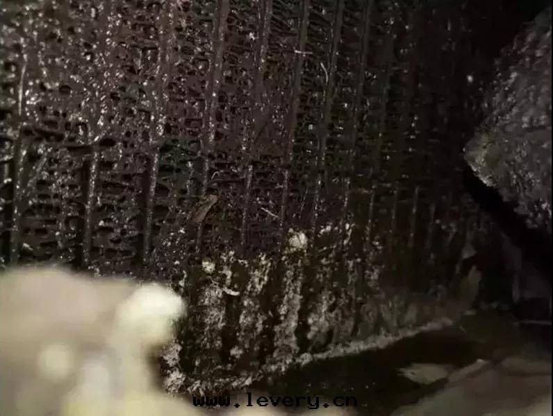 ▼蒸發(fà)箱(xiāng)上(shàng)積累的(de)污垢 ▼