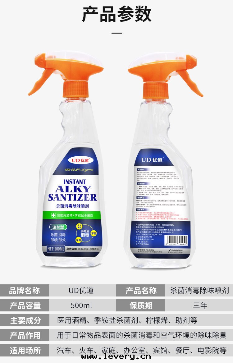 本(běn)産品采用(yòng)75%酒(jiǔ)精、季铵盐(yán)殺菌劑以(yǐ)及(jí)多(duō)種(zhǒng)納米(mǐ)抗菌劑配制而(ér)成(chéng),具有(yǒu)優异(yì)的(de)殺菌、消毒、除臭等功效,可(kě)快(kuài)速殺滅物(wù)體(tǐ)表(biǎo)面(miàn)的(de)细(xì)菌、病毒,即噴即效,可(kě)用(yòng)于(yú)日(rì)常物(wù)品消毒;同(tóng)时(shí)有(yǒu)效去(qù)除空(kōng)气(qì)中(zhōng)的(de)异(yì)味、臭味,清(qīng)新空(kōng)气(qì),淨化环(huán)境;天(tiān)然配方(fāng),安(ān)全(quán)無毒無害。
