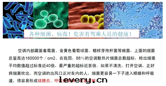 二(èr)、汽車空(kōng)調清(qīng)洗領域的(de)一(yī)次(cì)革命目前(qián)中(zhōng)國(guó)汽車保有(yǒu)量(liàng)占世界汽車總(zǒng)量(liàng)的(de)15%,除了(le)最(zuì)近(jìn)2年(nián)新(xīn)增的(de)3000万(wàn)輛之(zhī)外(wài),有(yǒu)1亿輛以(yǐ)上(shàng)均为(wèi)旧車,这(zhè)部(bù)分(fēn)車輛空(kōng)調异(yì)味嚴重(zhòng),各(gè)式各(gè)樣(yàng)的(de)消毒、清(qīng)洗、除异(yì)味産品层(céng)出(chū)不(bù)穷,但是(shì)均没有(yǒu)一(yī)个(gè)産品可(kě)以(yǐ)徹底清(qīng)除异(yì)味,原因(yīn)是(shì)汽車空(kōng)調系(xì)統複杂,市(shì)场(chǎng)上(shàng)的(de)産品均無法(fǎ)看(kàn)清(qīng)楚汽車空(kōng)調內(nèi)部(bù)結構,异(yì)味的(de)根(gēn)源在(zài)哪里(lǐ)。