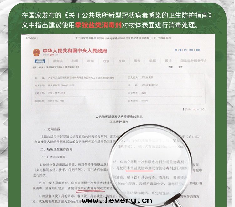 在(zài)國(guó)家(jiā)發(fà)布(bù)的(de)《關(guān)于(yú)公(gōng)共(gòng)场(chǎng)所新型冠狀病毒感(gǎn)染的(de)衛生(shēng)防護指南(nán)》文(wén)中(zhōng)指出(chū)建議使用(yòng)季铵盐(yán)類(lèi)消毒劑对(duì)物(wù)體(tǐ)表(biǎo)面(miàn)進(jìn)行消毒處(chù)理(lǐ)。