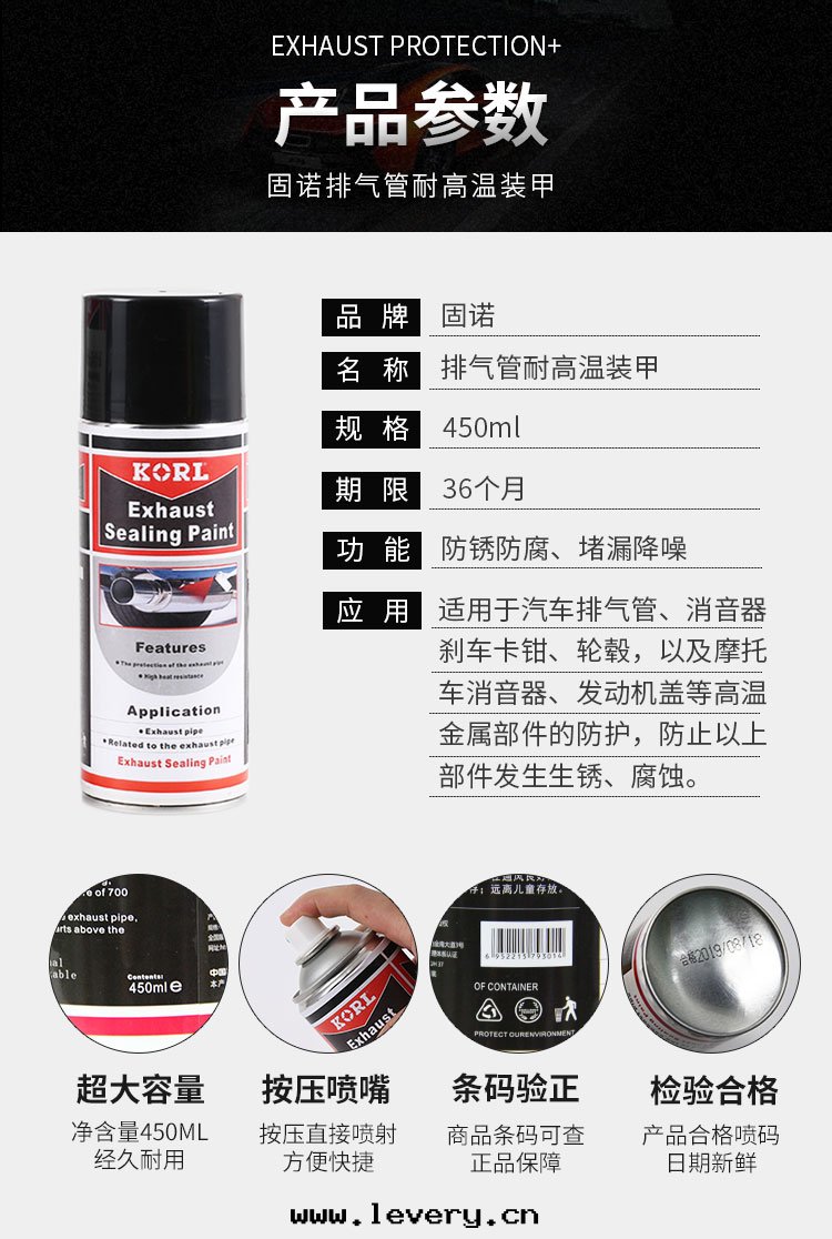 用(yòng)于(yú)保護排气(qì)管(guǎn)、消聲器,防止以(yǐ)上(shàng)部(bù)件(jiàn)腐蚀;