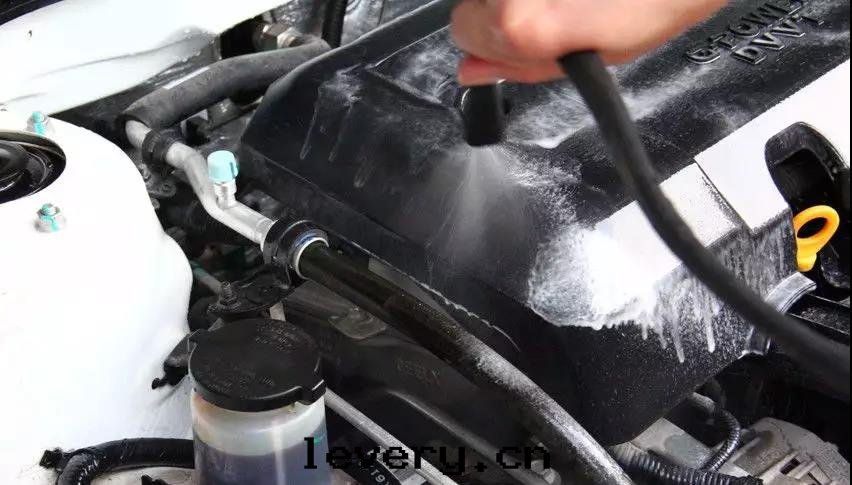 先(xiān)噴上(shàng)專用(yòng)发動(dòng)機(jī)艙清(qīng)洗劑。