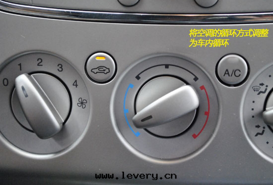 2. 将空(kōng)調的(de)循环(huán)方(fāng)式調整为(wèi)車內(nèi)循环(huán)