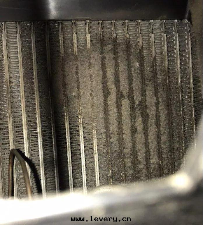 ▼蒸發(fà)箱(xiāng)上(shàng)積累的(de)污垢 ▼