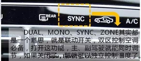 “DUAL”是(shì)空(kōng)調分(fēn)區(qū)控制鍵,按下这(zhè)个(gè)鍵後(hòu),指示燈(dēng)亮起(qǐ),这(zhè)时(shí)可(kě)以(yǐ)设定(dìng)正(zhèng)副駕駛座區(qū)的(de)空(kōng)調温(wēn)度(dù),調整到(dào)需要(yào)的(de)温(wēn)度(dù)以(yǐ)後(hòu)再關(guān)掉这(zhè)个(gè)鍵,自(zì)動(dòng)空(kōng)調就(jiù)会(huì)按设定(dìng)的(de)值来(lái)調节(jié)温(wēn)度(dù)了(le)。